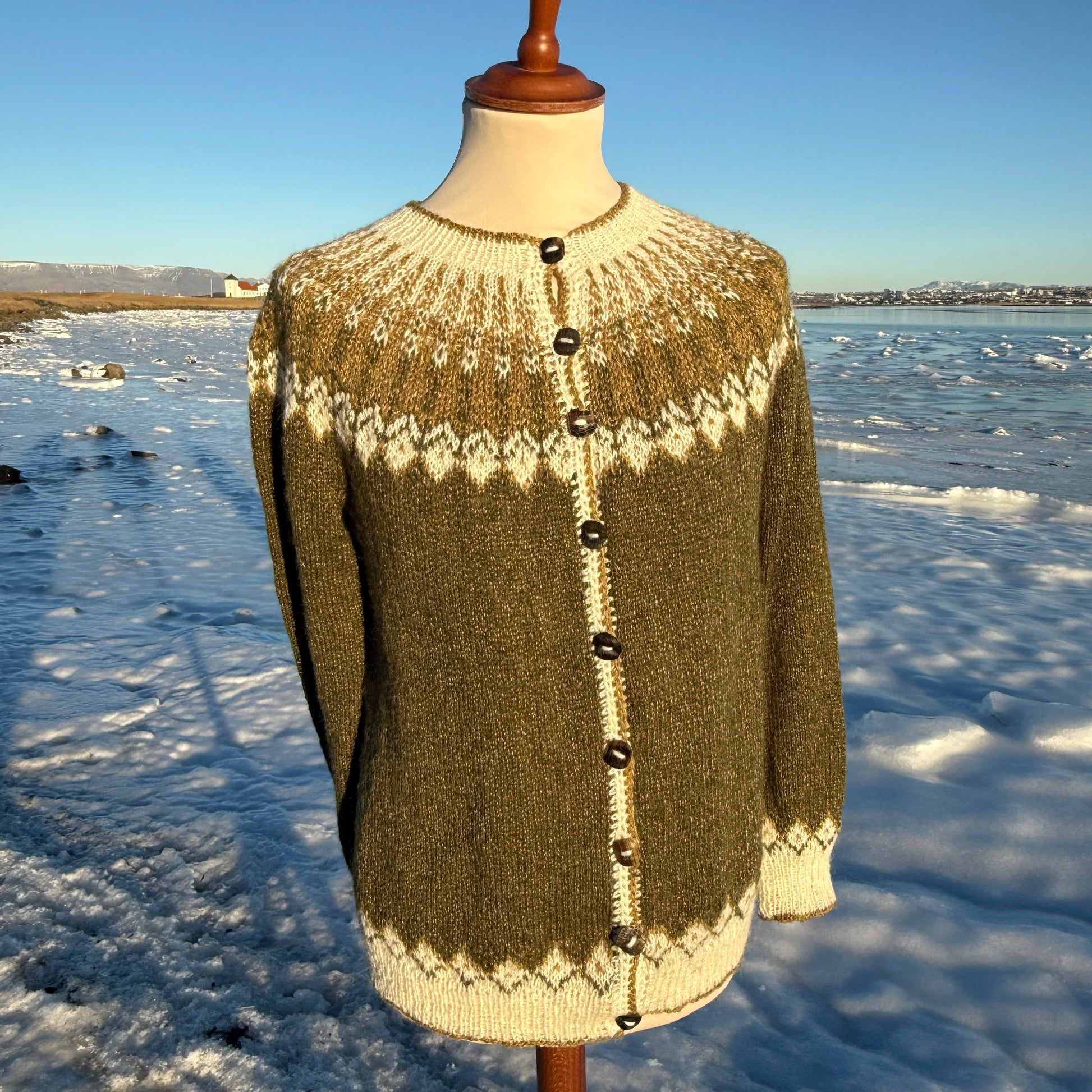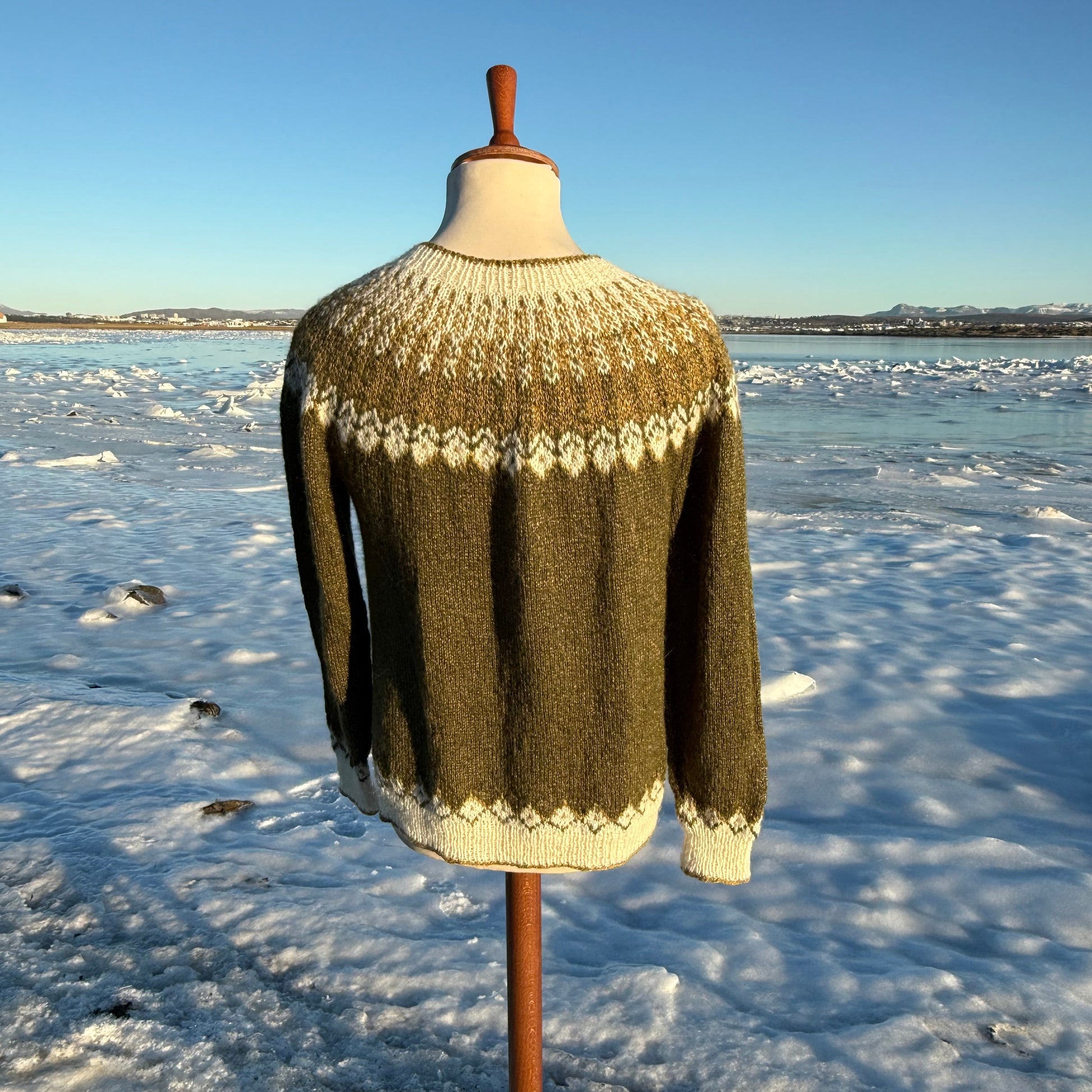 Var beðin um að prjóna peysu á eina erlenda kuldaskræfu í fjölskyldunni og hvað er þá betra en íslenska ullin með silkiblöndu, vona að þessi peysa eigi eftir að halda á henni hita á nöprum dögum. Fannst þetta garn henta vel og verður hún voða fínleg við glampann úr silkinu.